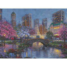 Robert Finale Artist Signed Limited Edition Hand-Embellished Canvas Giclee:"Misty Morning Blossoms, Central Park"